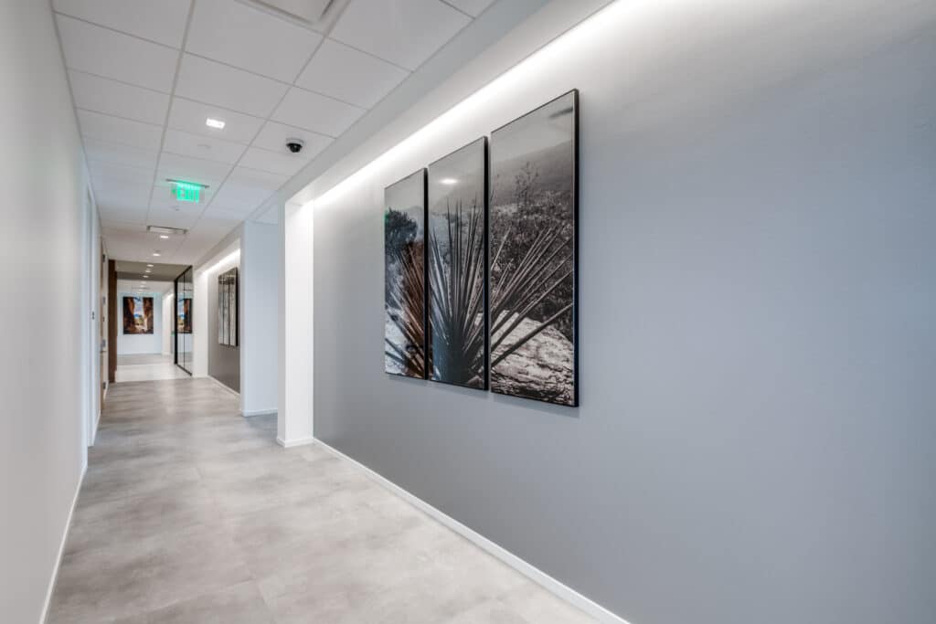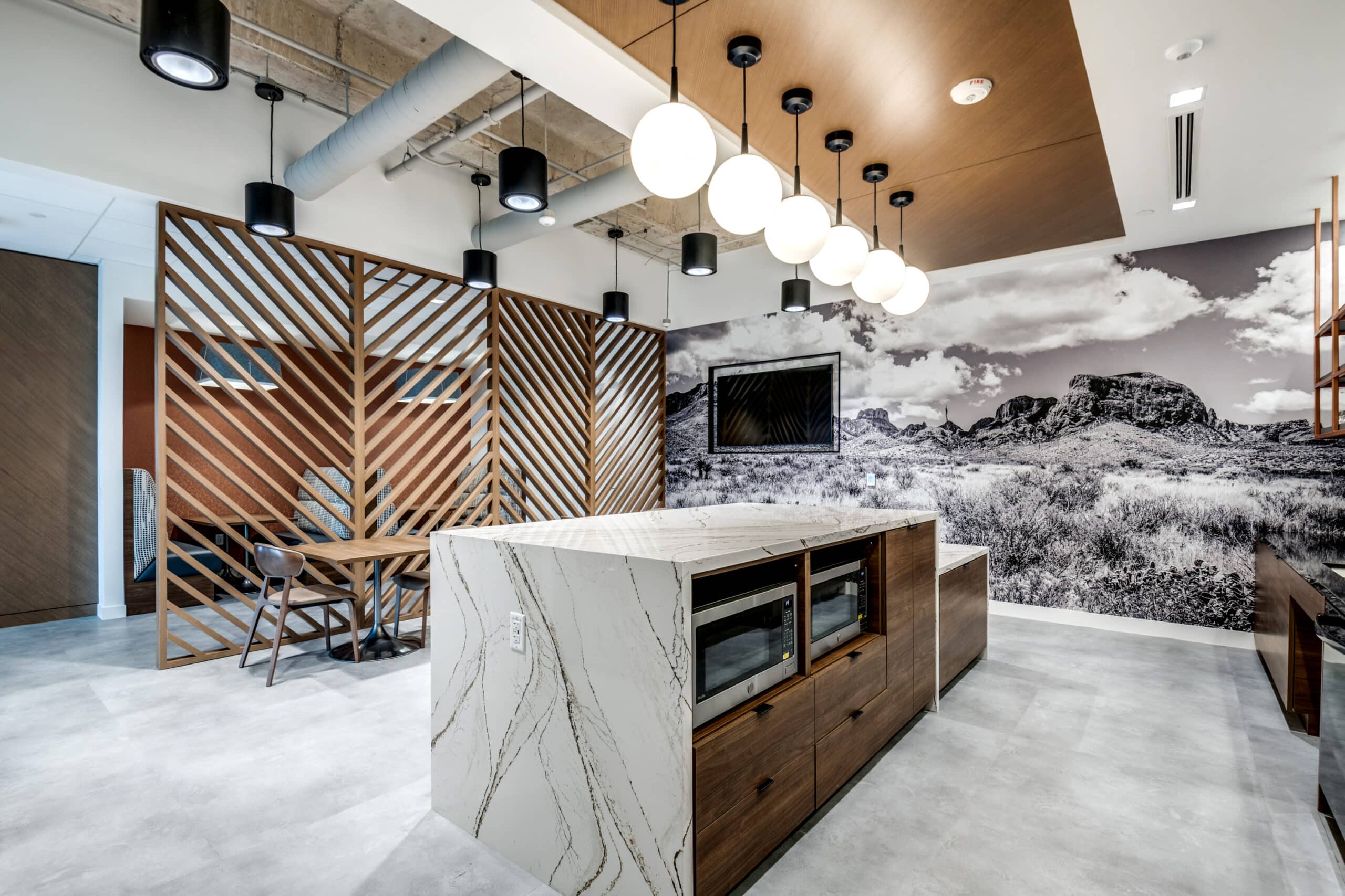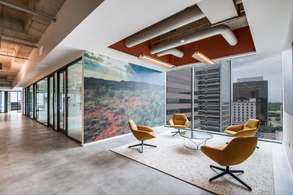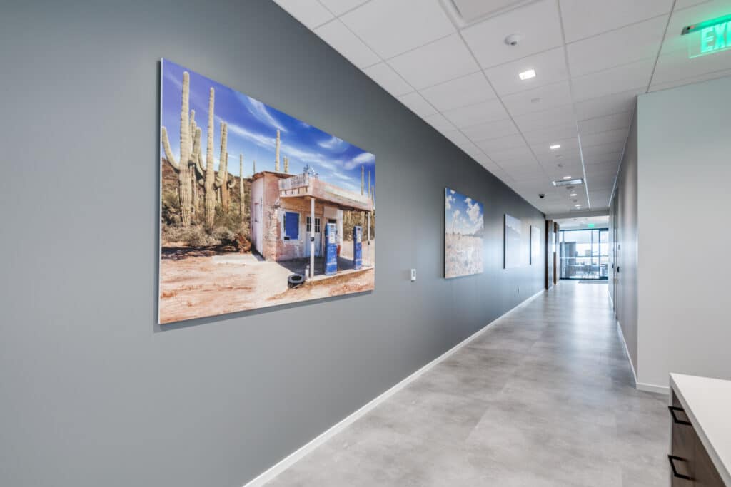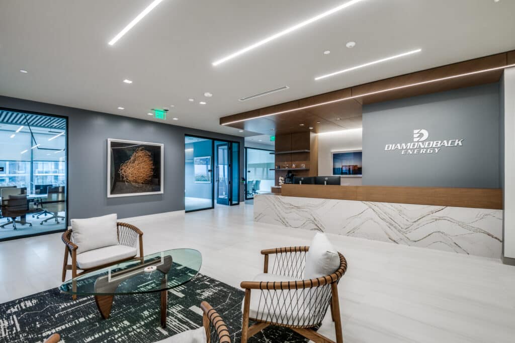 For Diamondback Energy’s corporate office, we created a bold, immersive brand experience that honors both their industry and their Texas heritage. A custom lobby logo anchors the space, while wallcoverings and printed glass film wrap the environment in layered storytelling. Framed metal and PVC prints—featuring textures and scenes inspired by Texas landscapes—bring regional flair into the workplace. Functional elements like ADA signage were also designed with brand cohesion in mind, resulting in a space that feels uniquely Diamondback.