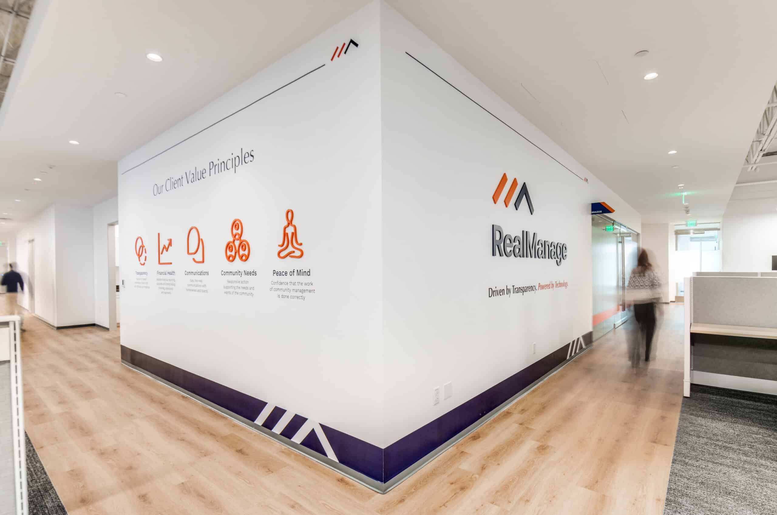 Together, these elements create a polished, functional environment that supports RealManage’s culture while reinforcing their brand at every touchpoint.